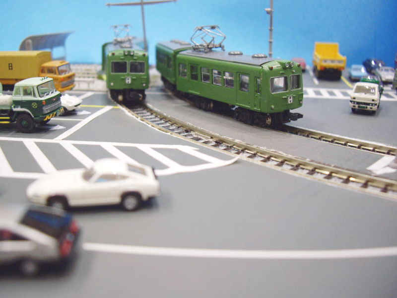 コメント一昔ほど前の、都市部の併用軌道っぽく作ってみました。 サイズが小さいので見方によってはデカい踏切にも見えるかも(笑)。 未完の大作に…